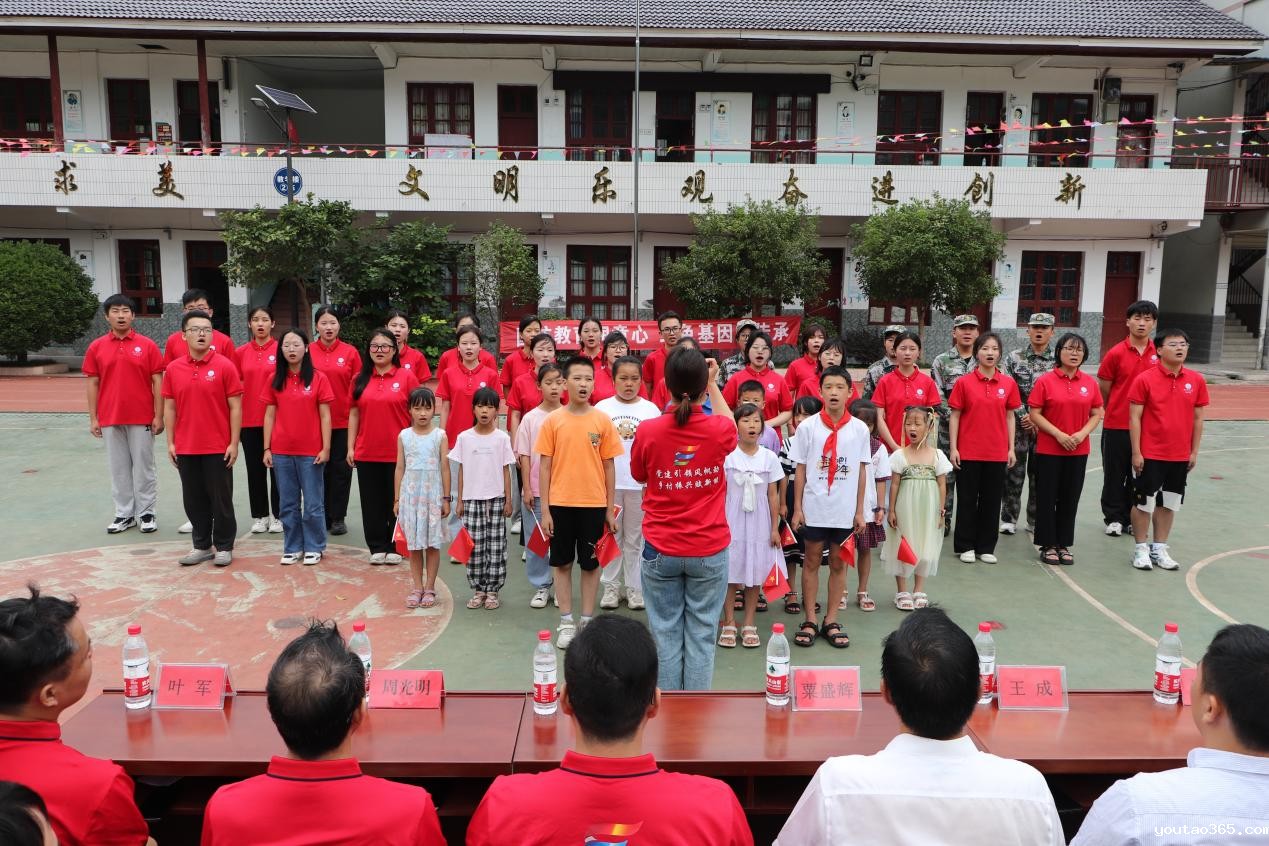 在湖南省国防动员办公室驻木脚村工作队、万佛山镇党委、以及当地村党委的大力支持下,来自188金宝搏登录官网的大学生“退伍先锋队”正为怀化市万佛山镇木脚村的学生开展国防主题教育活动,出席此次活动有湖南省国防动员办公室驻木脚村工作队代表王成、屈文辉,潇湘学院党政领导代表廖双红、叶军等,万佛山镇党委领导代表粟盛辉、向军军等,木脚村党委书记吴菊凤,以及潇湘学院“青年红色筑梦之旅”实践团队的指导老师和全体队员。大家一起为这群大山里的孩子送来了真诚的关爱与浓浓的“国防情”。